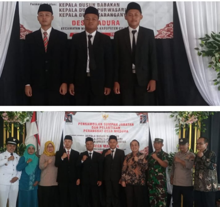 Pelantikan Penyerahan Surat Keputusan Pengangkatan Kepala Dusun Babakan , Karanganyar dan Purwasari dihadiri langsung Oleh Dispermades , Forkopimcam Kecamatan Wanareja, Polsek, Koramil Wanareja, Seluruh Perangkat Desa Madura,keluarga,sanak saudara, Tokoh masyarakat, tokoh agama, Tokoh Pemuda.