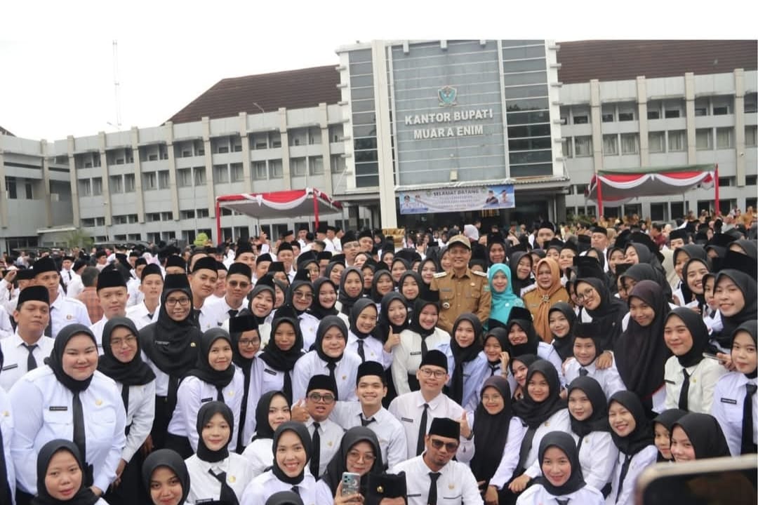 MUARA ENIM SUMSEL, tipikorinvestigasinews.id –Sebanyak 704 Calon Pegawai Negeri Sipil (CPNS) Pemerintah Kabupaten Muara Enim diresmikan oleh Bupati Muara Enim, H. Edison,S.H., M.Hum., di Halaman Kantor Bupati Muara Enim, Senin (26/05).