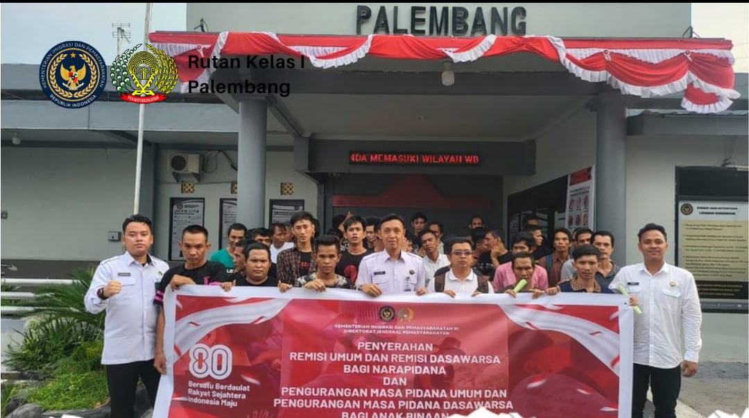 Dalam rangka Peringatan Hari Ulang Tahun Ke-80 Republik Indonesia Tahun 2025 dengan tema “Bersatu, Berdaulat, Rakyat Sejahtera, Indonesia Maju”, melalui Kepala Rutan Kelas I Palembang, M. Rolan, warga binaan Rutan Kelas I Palembang terima Remisi Umum dan Remisi Dasawarsa Tahun 2025. Minggu (17/08/25).