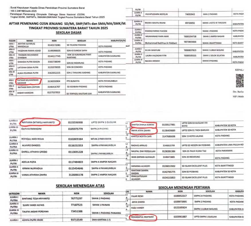 Ajang O2SN yang dilaksanakan ditingkat Provinsi Sumatera Barat oleh Dinas Pendidikan Sumatera Barat pada 21 Juli 2025 telah membuahkan hasil yang sangat mengejutkan.
