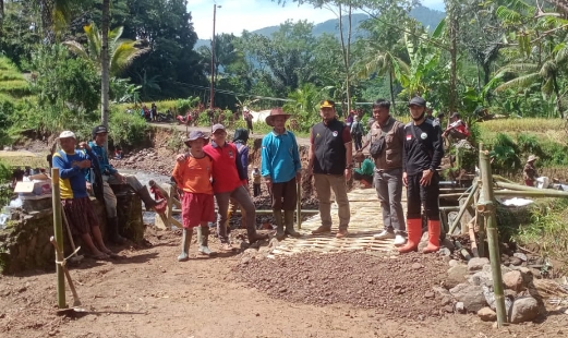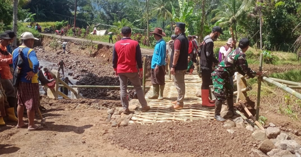 Untuk bisa berjalannya ekonomi dan akses warga,camat salem beserta relawan,Tni dan warga langsung mengadakan kegiatan kerja bakti pembuatan jembatan sementara dari bambu didesa gandoang.