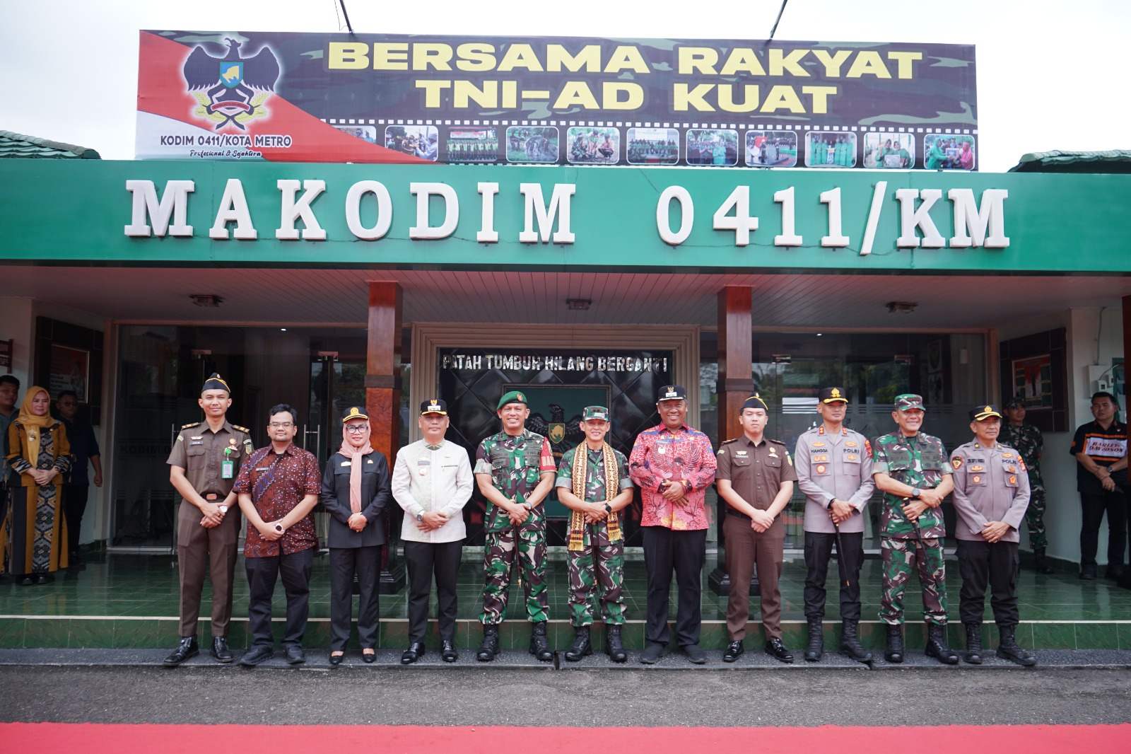 Dandim 0411/KM Letkol Inf Noval Darmawan S.H., M.I.P. berserta Ketua Persit KCK Cab.XXXI Dim 0411/KM, Ny Dian Noval Darmawan. Dan Walikota Metro,H.Bambang Iman Santoso, S.Sos.,M.Si Bupati Lamteng di wakili Wakil Bupati I Komang Koheri