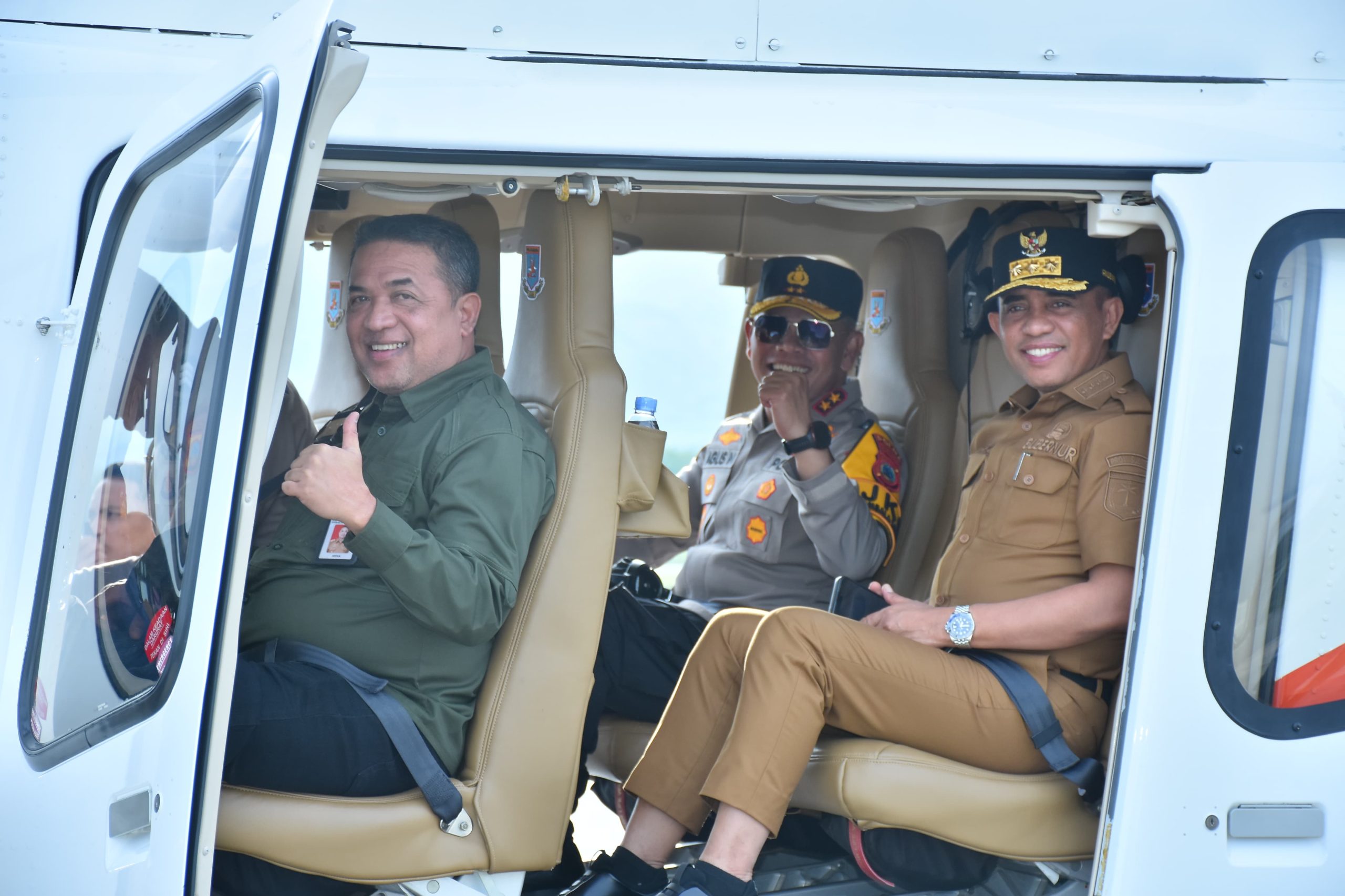 PALU,tipikorinvestigasinewsid,-Kapolda Sulteng Irjen Pol Dr. Agus Nugroho bersama Gubernur Dr. Anwar Hafid bertolak dari Bandara Mutiara Sis Aljufri Palu menuju Kabupaten Banggai menggunakan pesawat Helicopter Polri, Sabtu (5/4/2025)