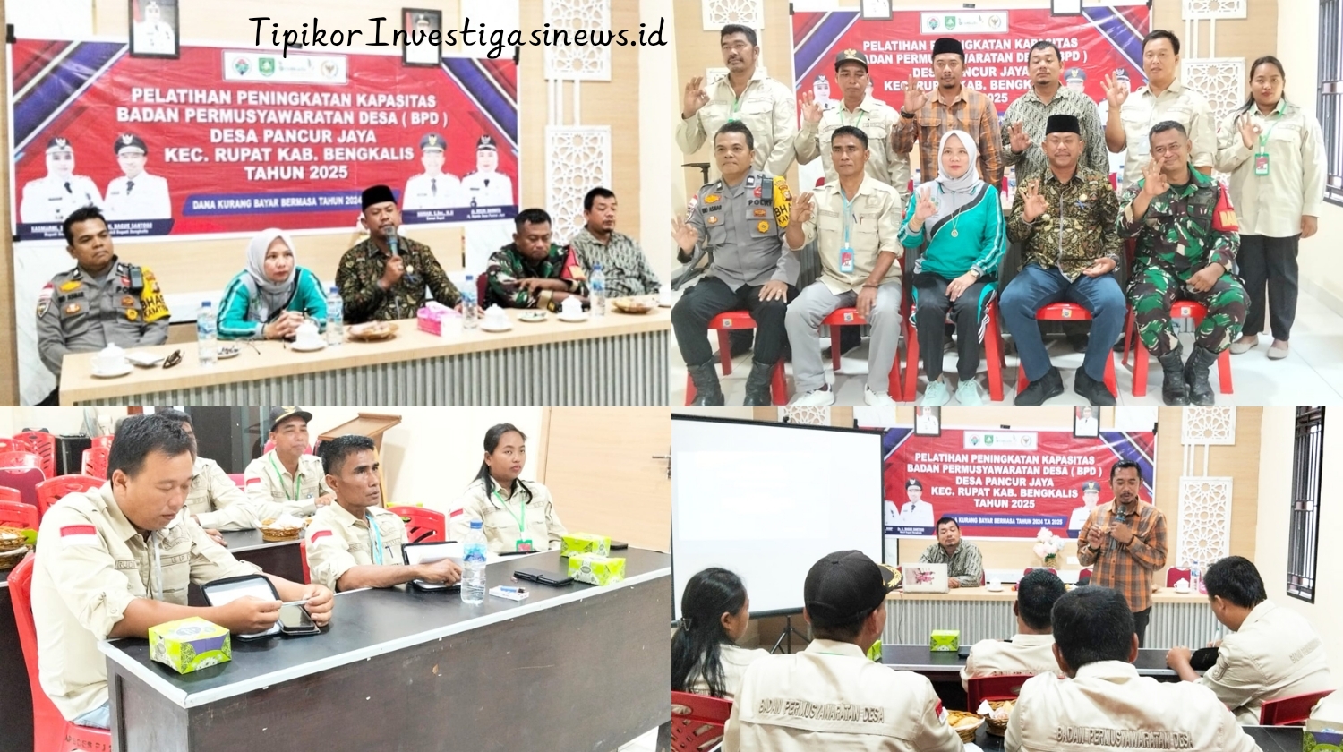 Pemerintah Desa Pancur Jaya Kecamatan Rupat,Kabupaten Bengkalis Riau.Gelar Pelatihan Peningkatan Kapasitas Badan Permusyawaratan Desa( BPD ).Dengan sumber dana kurang bayar Bermasa tahun 2024,pelaksanaan tahun 2025 dihadiri Camat Rupat.Kegiatan dilaksanakan di Aula Pertemuan Kantor Desa setempat Kamis,09 Oktober 2025 sekira pukul 09.00 WIB.