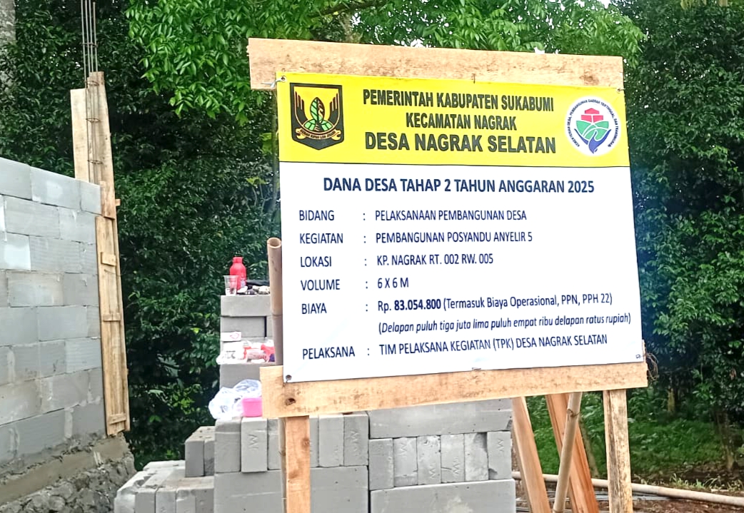 Senin, 4 Agustus 2025. Pemerintahan Desa Nagrak Selatan ,kecamatan Nagrak,Kabupaten Sukabumi,Jawa Barat, beserta masyarakatnya saat ini sedang di laksanakan pembangunan sarana pasilitas umum, desa Nagrak Selatan tersebut dibiayai dari programย Dana Desa (DD) tahap Dua tahun Anggaran 2025,