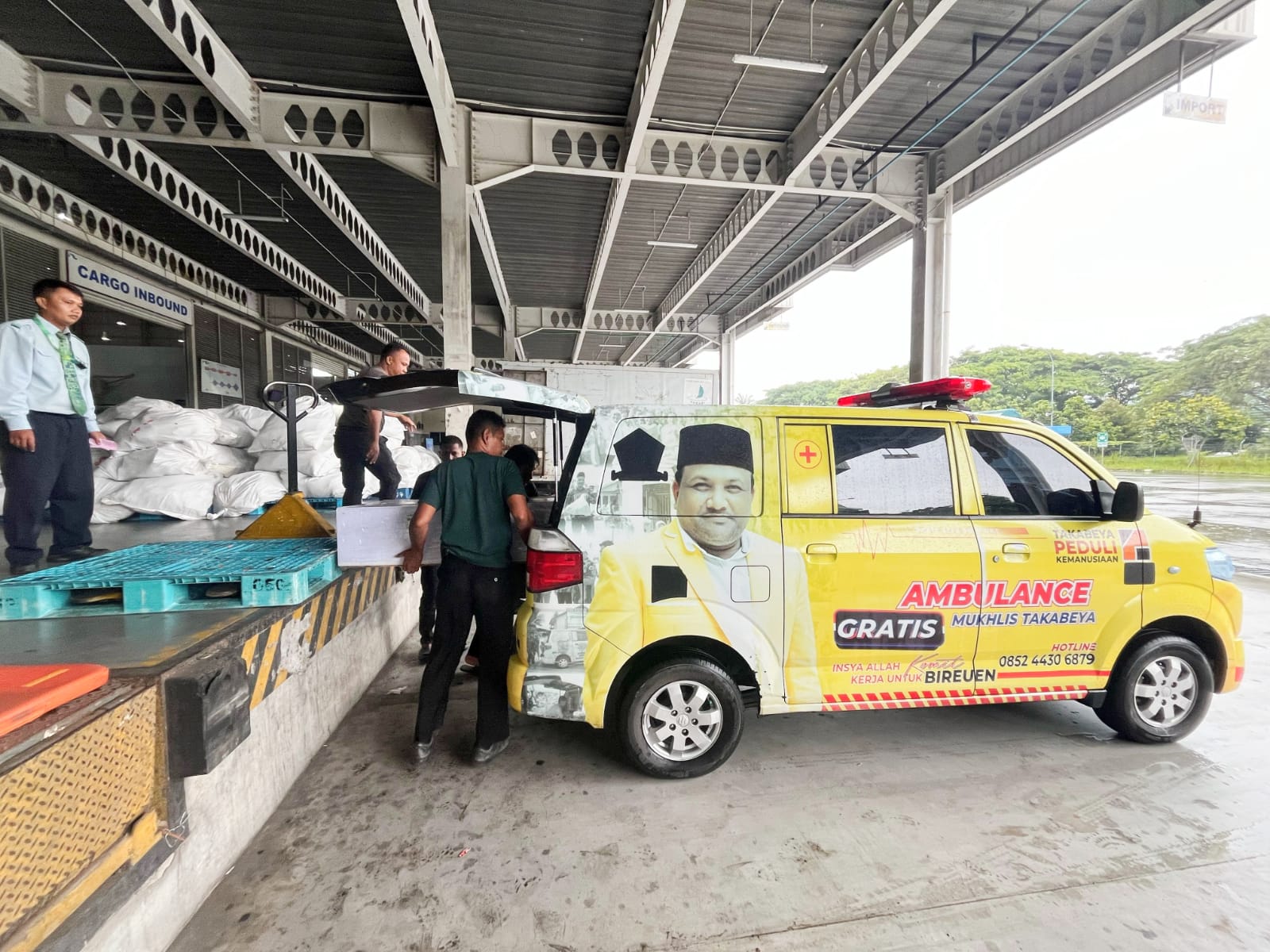Pihak Keluarga menghubungi H Mukhlis untuk meminta bantu ambulance untuk penjemputan di Bandara Kuala Namu Kabupaten Deli Serdang Sumatera Utara.