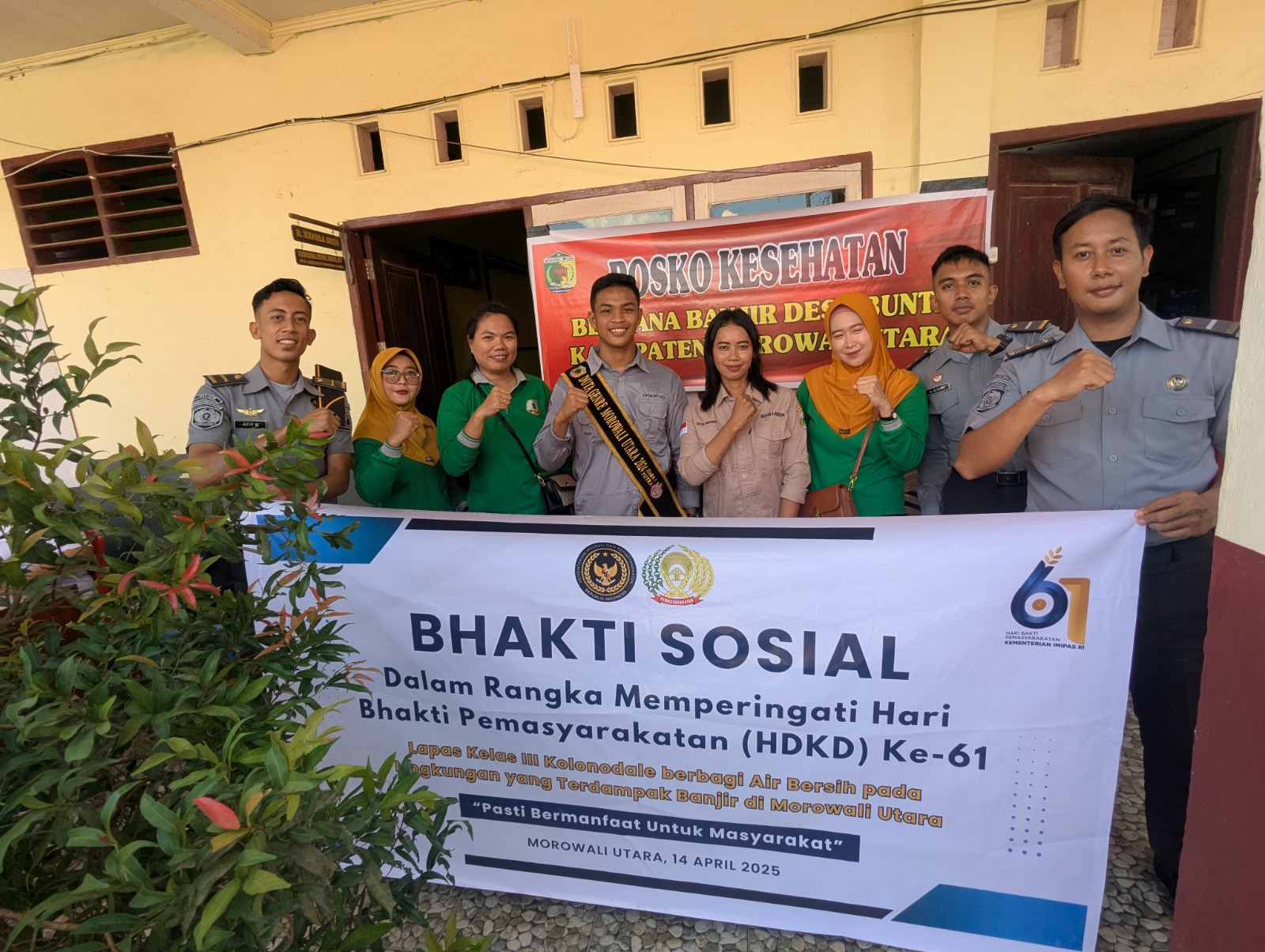 Morowali Utara,Tipikorinvestigasinews.id,- Kolonodale Dalam rangka memperingati Hari Bakti Pemasyarakatan (HBP) ke-61, Lembaga Pemasyarakatan (Lapas) Kelas III Kolonodale menggelar kegiatan bakti sosial bagi masyarakat terdampak banjir di wilayah sekitar Desa Bunta, Kecamatan Petasia Timur, Kabupaten Morowali Utara, Senin (14.04).