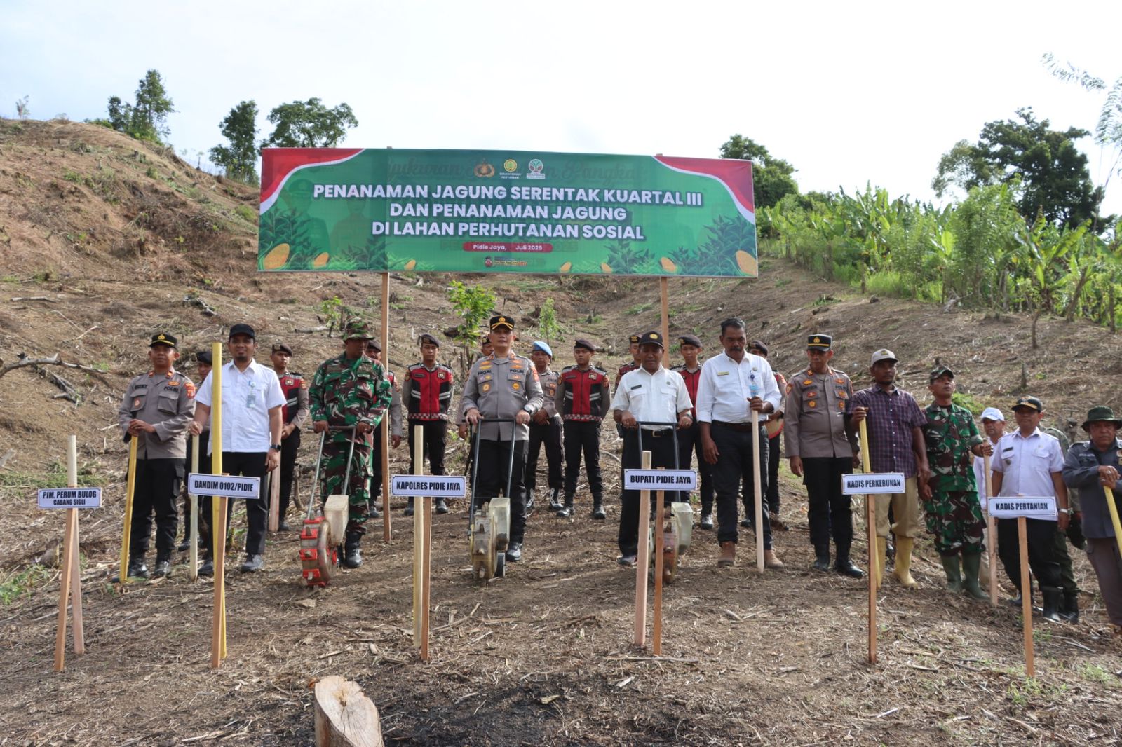 PIDIE JAYA,tipikorinvestigasinews.id -Dalam rangka memperkuat ketahanan pangan nasional, Kapolres Pidie Jaya AKBP Ahmad Faisal Pasaribu, S.H., S.I.K., M.H. memimpin langsung kegiatan penanaman jagung serentak Kuartal III di atas lahan perhutanan sosial di Gampong Blang Sukon, Kecamatan Bandar Baru, pada Rabu, 9 Juli 2025.