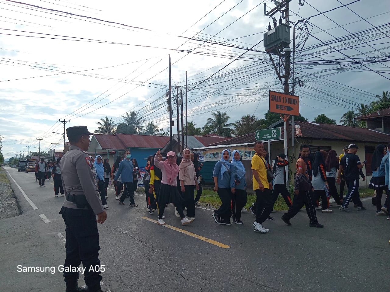 Personil Polsek Nuhon melaksanakan Pengamanan jalur jalan santai dalam rangka menyemarakkan hari pendidikan nasional (Hardiknas) tahun 2025 tingkat Kecamatan Nuhon Kabupaten Banggai, Kamis (1/5) pagi.