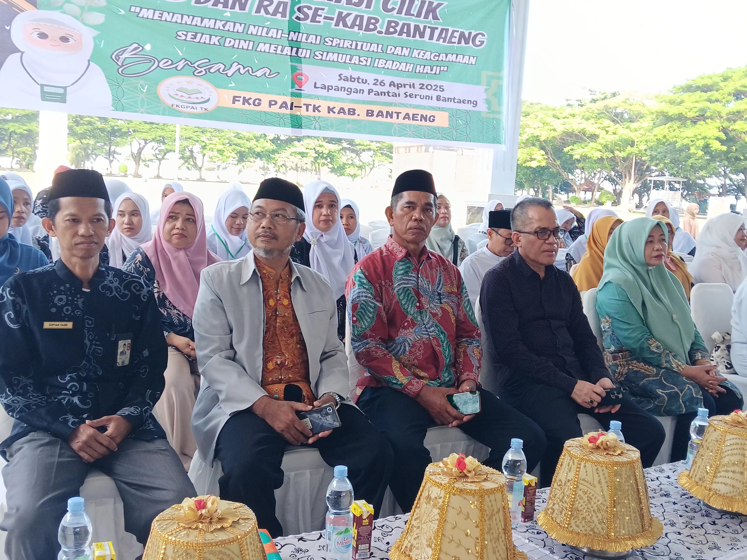 BANTAENG ,tipikorinvestigasinews.id- Bertempat di Lapangan Pantai Seruni baru saja dilaksanakan kegiatan Manasik Haji Cilik TK, KB dan RA se-Kabupaten Bantaeng yang dilaksanakan oleh Forum Komunikasi Guru Agama Islam Taman Kanak-Kanak (FKG PAI-TK) Kabupaten Bantaeng, Sabtu (26/4/2025).